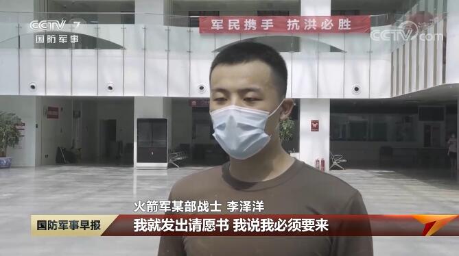 火箭军某部战士 李泽洋:在这次任务还没有出发之前,我就发出请愿书,我说我必须要来,我是“00后”,我们一定要在抗洪现场把老一辈的精神继续传承下去,继续发扬光大。
