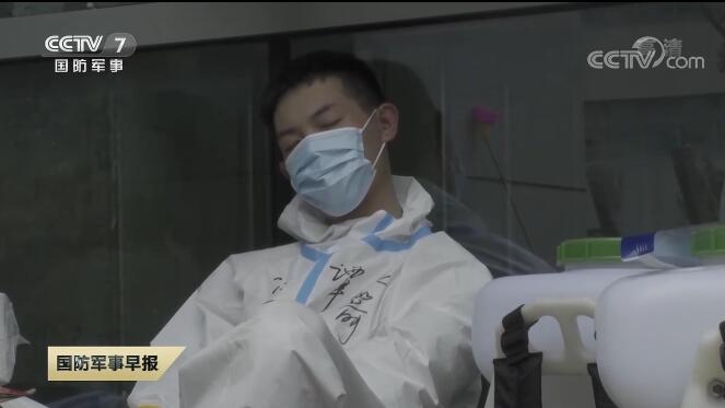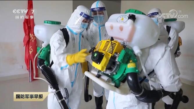 火箭军某部部队医院护士 黎敏:最高楼层有19层,战士们从二楼装上消毒液,然后徒步走到19楼进行消杀。医院的疫情现在基本已经稳定住了,现在主要是消杀病毒。