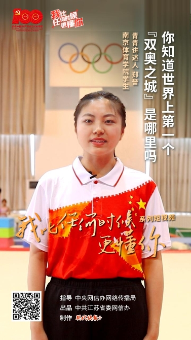 7 月 29 日," 我比任何时候更懂你 " 系列短视频第 5 集《你知道世界上第一个 " 双奥之城 " 是哪里吗?》上线。本集青青讲述人是南京体育学院学生郑誉。