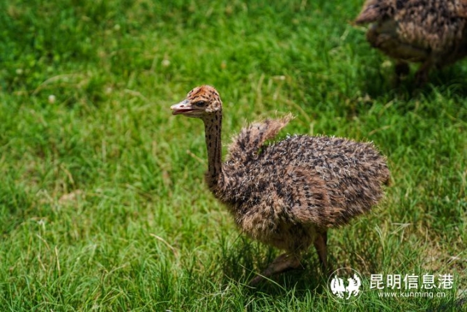 在云南野生动物园非洲部落园区,20多只小鸵鸟成了新晋的动物明星,引不少游客驻足围观。工作人员专门划定了一片青草地让小家伙们平时能“练练腿”、晒太阳。