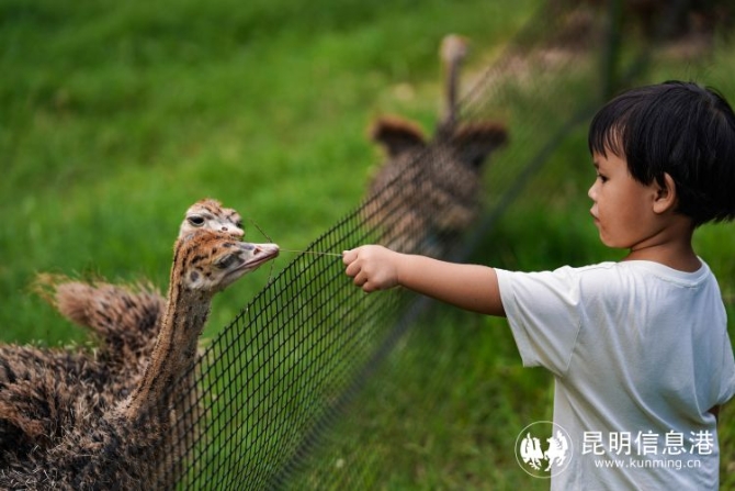 据介绍,随着小鸵鸟不断长大,它们的胃口也逐渐变大,如今,小鸵鸟一天的“饭量”已经达到了20公斤,除了青菜、青草之外,工作人员还会专门准备鸟类喜爱的饲料等专供产品为它们改善伙食。作为一群好奇宝宝,小家伙们根本不认生,不仅大方地和游客们互动,也乐于享用大家投喂的美食。(昆明信息港 记者段佳琪)
