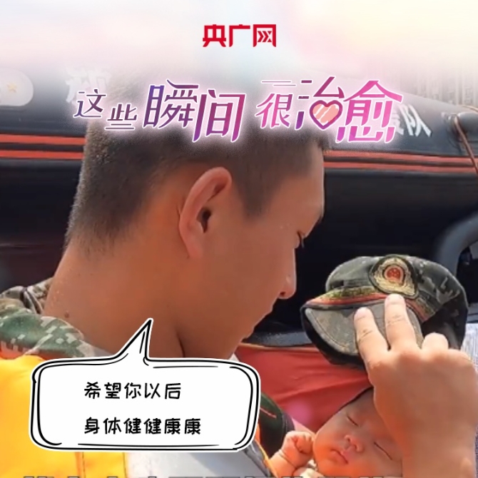 广东潮州的“00后”武警救出“20后”满月婴儿,并脱下帽子为孩子遮阳。