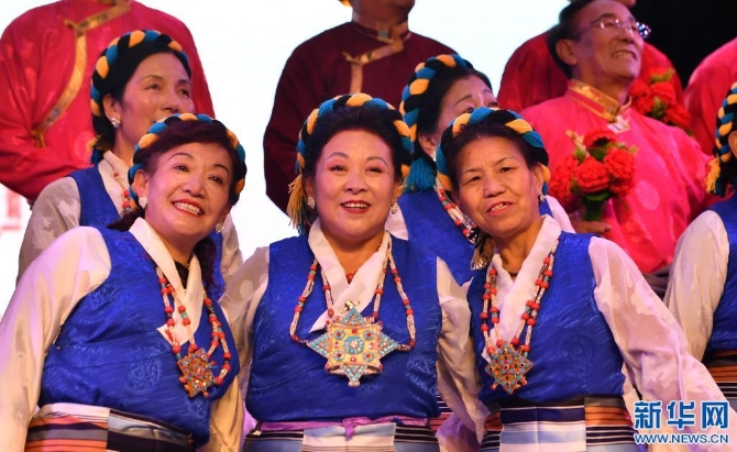 拉萨市老年文艺队在拉萨市群众艺术馆演出(2019年12月13日摄)。 新华社记者 觉果 摄