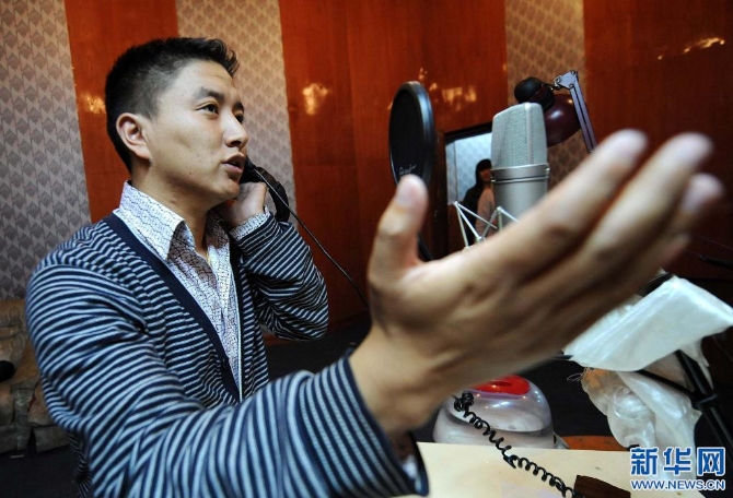 西藏电视台藏语配音员在给电视剧配音(2009年9月29日)。新华社记者 觉果 摄