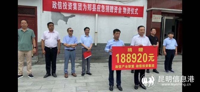 政信投资集团深耕政信领域七年来,与河南省多地政府及当地国资平台企业建立良好的合作关系。此次河南遭遇暴雨,政信投资集团云南分公司全体同仁感同身受,迅速响应集团号召,积极踊跃捐款。集团协同政信产业联盟内的其他企业和个人筹集善款188920元驰援河南,并紧急采购800箱当前急需的物资送达当地的应急管理部门。另外,集团为郏县高铁站站前广场的配套基础设施建设提供1000万元的应急资金,助力配套设施建设早日完工,投入运营。