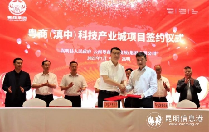 昆明信息港讯 记者郭成明 7月30日,粤商(滇中)科技产业城项目签约仪式在嵩明举行。云南省工信厅副厅长聂里宁、广东省工商联副主席冯日光 、云南省工商联副主席王志荣 ,市委常委李康平,滇粤两省相关部门负责人,嵩明县委、县政府相关领导参加签约仪式。