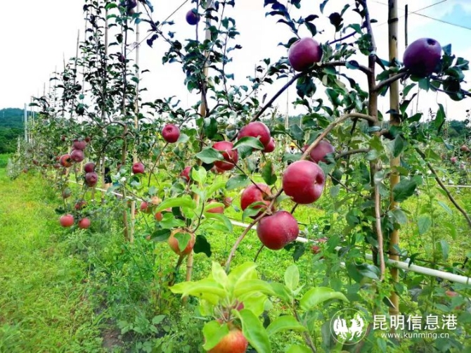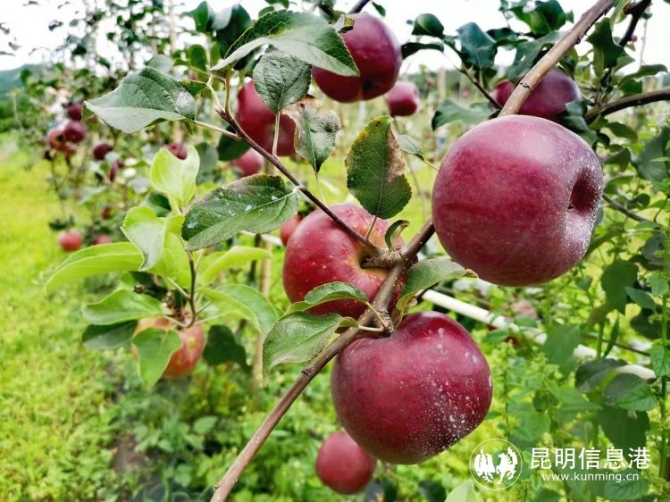 昆明信息港讯 记者郭成明 7月31日,嵩明县嵩阳街道“羊圈坡苹果”基地正式开园,接受入园采摘和采购预定。这也是嵩明“羊圈坡苹果”产业项目落地实施以来的首次挂果,有效解决了嵩明高品质水果供应不足的短板,实现脱贫攻坚与乡村振兴有效衔接。