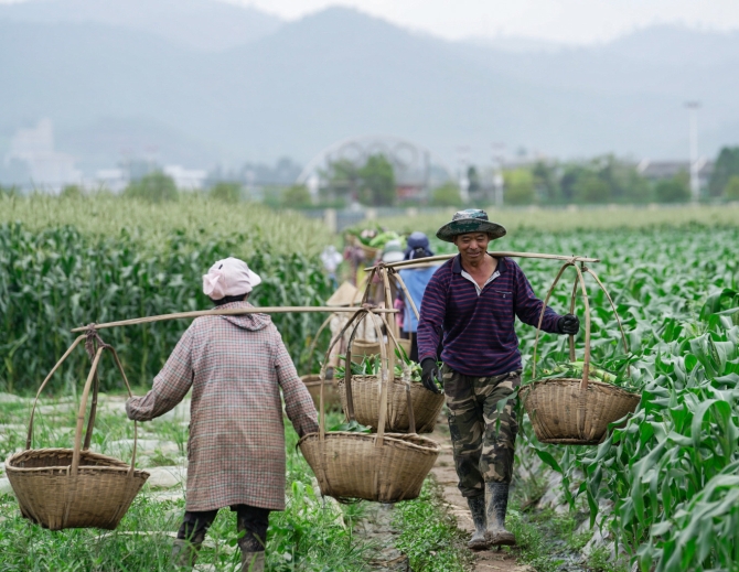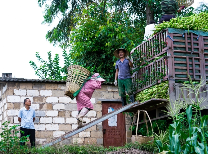 “合作社种植了12个蔬菜品种,种植面积最多的是鲜食玉米和花菜。现在,基地的蔬菜销往广州、汕头、海口等27个城市。”据峨山县纪业蔬菜产销合作社理事长李英介绍,合作社在为村民提供农业技能培训的基础上,同时也帮扶村里的困难群众,为他们送去种苗、农药、化肥等农资产品。除此之外,吸引了61户农户入社,带动周边群众610户。(图片:田间劳作 记者徐毅杰摄)