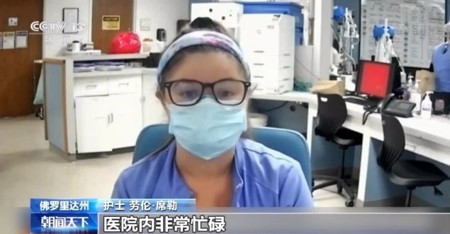 佛罗里达州护士 劳伦·席勒:现在的情况就如同去年12月,今年1月,上一拨疫情高峰时那样,我们又回到了起点,尽我们所能地去救治病人,医院内非常忙碌。