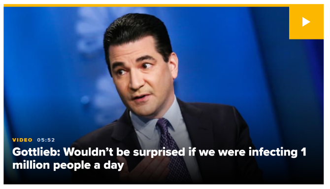 戈特利布称,确诊病例数与真实感染水平之间的差异源于那些无症状或仅出现轻微症状的患者,他们不会接受美国卫生部门的检测并出现在官方所公布的确诊病例数字中。