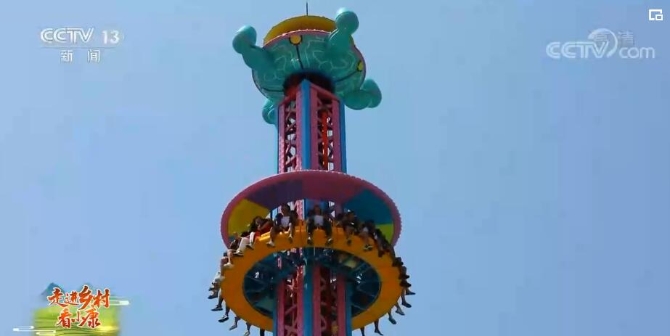 来咱们这儿拍拍照,玩玩那个滑梯,但感觉有点意犹未尽,没玩好。那你别急,咱们村里面还有个游乐城。村里还有个游乐场?就在前面,咱们看看去。
