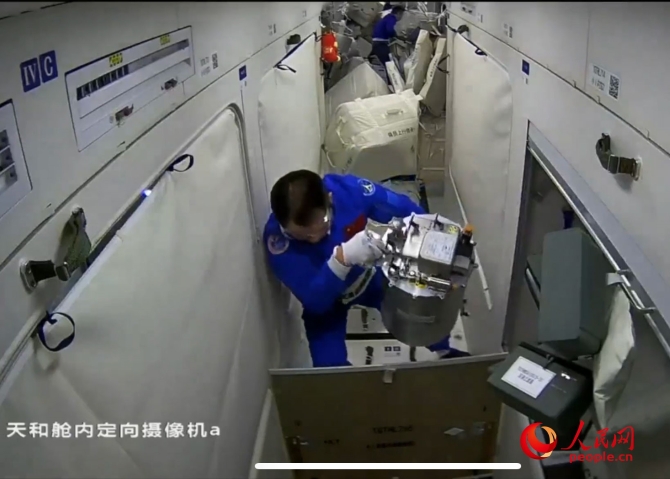 在距离地球约400公里的太空中,航天员聂海胜、刘伯明和汤洪波仔细研究安装说明,亲自上手“搞装修”,将卫生区的设施一一组装到位。天和核心舱内的3名中国航天员,生活和工作有序规律,越来越找到家的感觉。