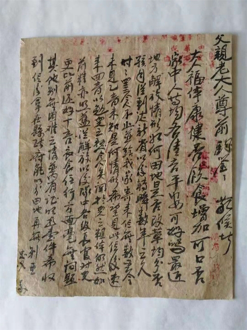 进藏前,不识字的陈忠义托人代笔,给家里写了一封信。