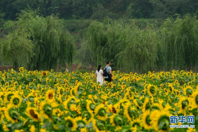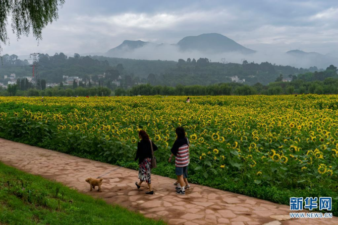 近日,云南省安宁市温泉街道牧羊村的200多亩向日葵盛开,成为当地一道靓丽的风景。(郑益7月31日摄影报道)