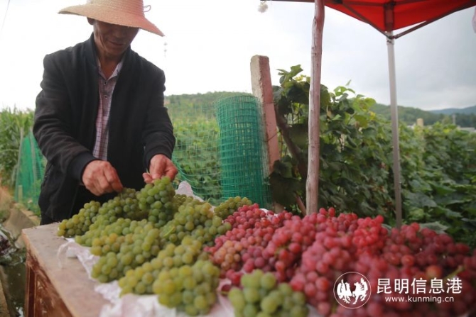 据了解,禄脿街道现共种植有早、中、晚熟3个品系的葡萄,早熟品种有:早黑蜜、夏黑;中熟品种有:维娜莎、康能无核、赫姆诺德、香悦、巨峰、水晶等;晚熟品种为:克伦森无核、摩尔多瓦、晚红提、秋黑等。目前,早熟和中熟品种已大量成熟可供采摘;晚熟品种预计从9月开始成熟,采摘期可持续至11月底。其中,小粒无核中熟品种维娜莎为全国范围内少有的本土优化品种,一段时间以来畅销全国,主要发往辽宁锦州、广州深圳等地。今年因受疫情影响,葡萄售价较往年有所下滑,在禄脿葡萄地里采摘或现场购买的价格为7-10元/公斤。