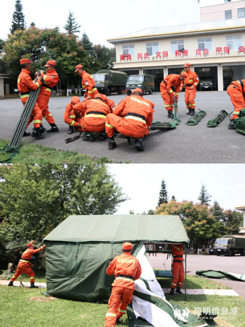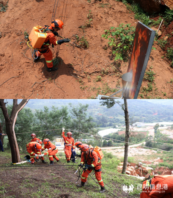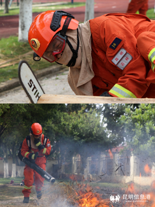 昆明信息港讯 记者江枫 通讯员周宏宇 邓资健 近日,昆明森林消防支队石林中队开展比武科目检验性考核。据介绍,此举旨在备战“火焰蓝”比武竞赛,巩固强化救援训练成果,查找自身综合救援能力中存在的不足。