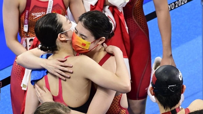 中国选手巩立姣在自己的第4次奥运之旅上夺得了女子铅球冠军,新西兰名将亚当斯收获了银牌。发布会上,巩立姣说:“亚当斯37岁,已经有两个孩子,还在征战,是我学习的对象。”在体操女子平衡木决赛中,中国队员管晨辰和唐茜靖包揽了金银牌。赛后,管晨辰与美国选手苏妮莎·李击掌、拥抱。