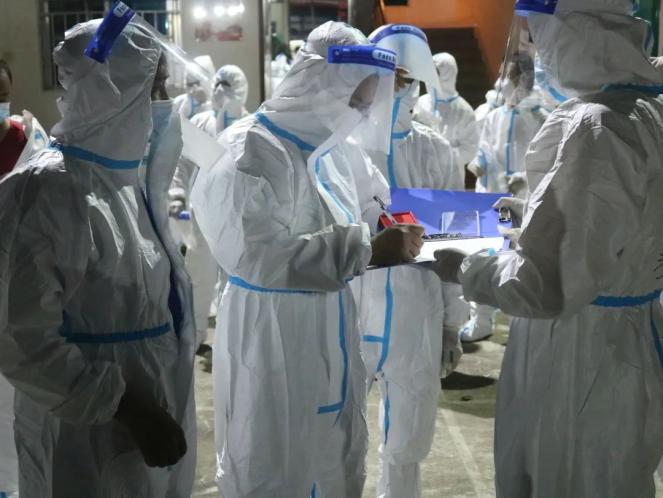 30多度高温下芒市援瑞医护人员段生解脱下防护服时,浑身湿透,汗水淌了一地。