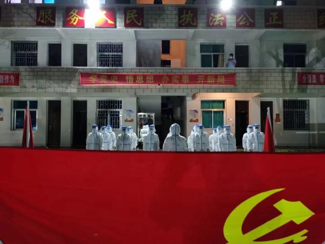 当晚,46名队员在党旗前列队,举起右拳,郑重宣誓。踊跃请战的他们用实际行动诠释了作为共产党员的责任与担当,到最危险的地方去,到群众最需要的地方去。