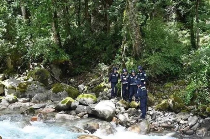 独龙江乡昼夜温差较大,白天执勤人员全副武装在密林中巡查,潮湿闷热让他们无法呼吸,很多时候还没有走多久衣服就已湿透,但大家都是把汗水一抹,继续前行。夜晚的疫情防控卡点气温骤降,大家冷得瑟瑟发抖,执勤人员就在简易帐篷里围着火塘熬过一个个漫漫长夜。虽然条件艰苦,但没有一个人后退。