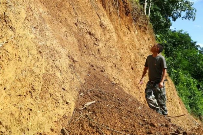 在普洱市西盟县中缅边界的南弄河第36分段值守巡逻点上,同样因为连连的暴雨,导致界河边境线上多处塌方,险象环生,泥泞的道路记录下了突击队员深深浅浅的足印。