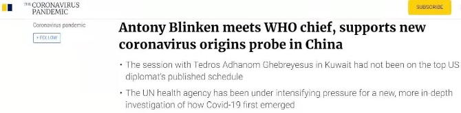 △《南华早报》:这次会晤并不在布林肯官方日程上,世卫组织正面临美国越来越大的压力。