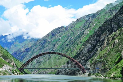藏木雅鲁藏布江双线特大桥全长525.1米,主拱跨径430米。新华社记者 刘洪明摄