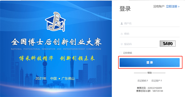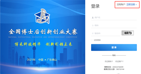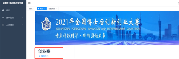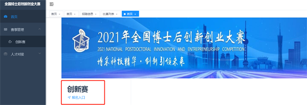 第一步:登录2021年全国博士后创新创业大赛官方网站