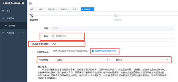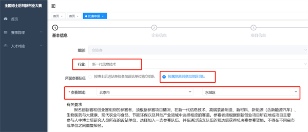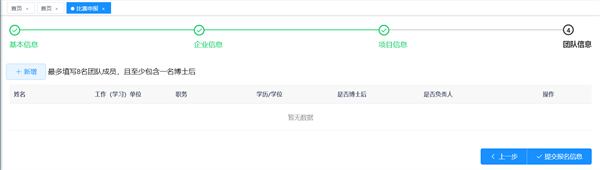 (上图为“创业赛”基本信息及企业信息申报页面)