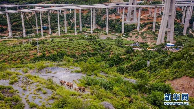 8月9日,象群在云南省玉溪市元江县境内的一处高速路桥下短暂停留。新华社记者 江文耀 摄