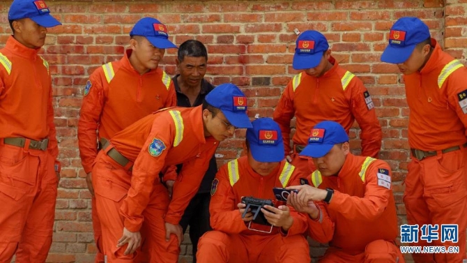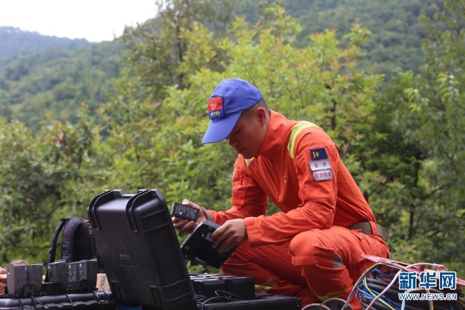 队员正在给无人机电池充电(摄于7月29日)。新华网发(郭元丰 摄)