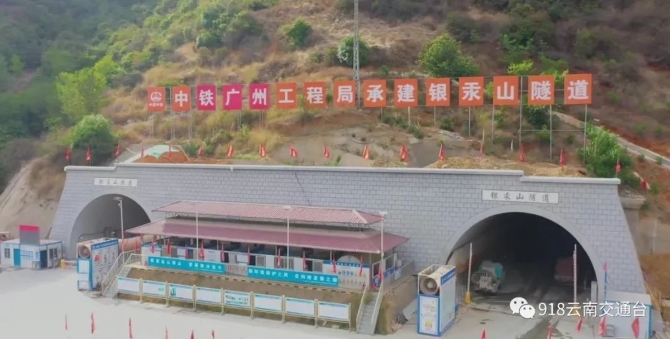 银汞山隧道全长1.1km,隧道工程进出口偏压,隧道内部分地段含有害气体,地质条件复杂。隧道使用了衬砌拱顶防脱空预警系统,能有效监测拱顶混凝土密实性情况,保证混凝土的浇筑质量。隧道施工采用左右洞单向掘进,通过合理的施工组织安排,昼、夜不间断的连续施工作业,隧道工程预计今年8月底前贯通。