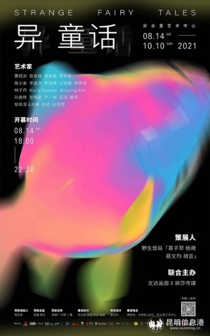 昆明信息港讯 记者孙红亮 想知道当童话世界与艺术世界相遇,会呈现出怎样一番景象吗?8月14日,2021昆明异童话展览在彩云里艺术中心开幕,展览集结了21位国内外新锐艺术家,展出他们近年创作的100余件艺术作品,展览形式涉及绘画、动画、装置等,走进展览就开始回到天马行空童年的旅程,看完以后会对生活有新的思考。