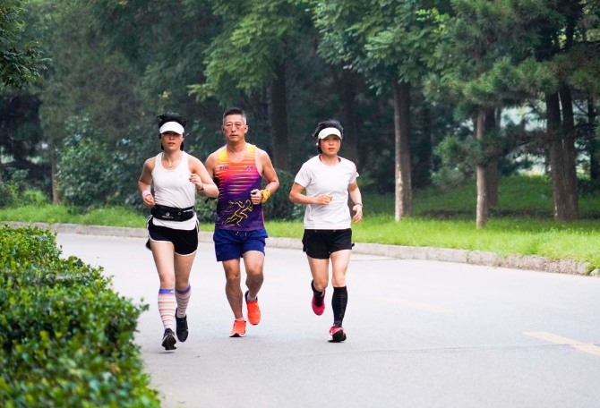 河北省遵化市的长跑爱好者在公园晨练。新华社发 刘满仓摄