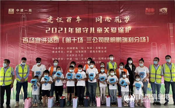 昆明信息港讯 记者劳学丽 通讯员张金栋 8月14日,中建一局第十场“建证百年 同心筑梦”2021年留守儿童关爱保护百场宣讲活动在鹏瑞利国际健康商旅城——昆明南站项目处顺利开展,昆明市呈贡区总工会代表李维娜、项目一线员工、工友代表及子女共计40余人参加。