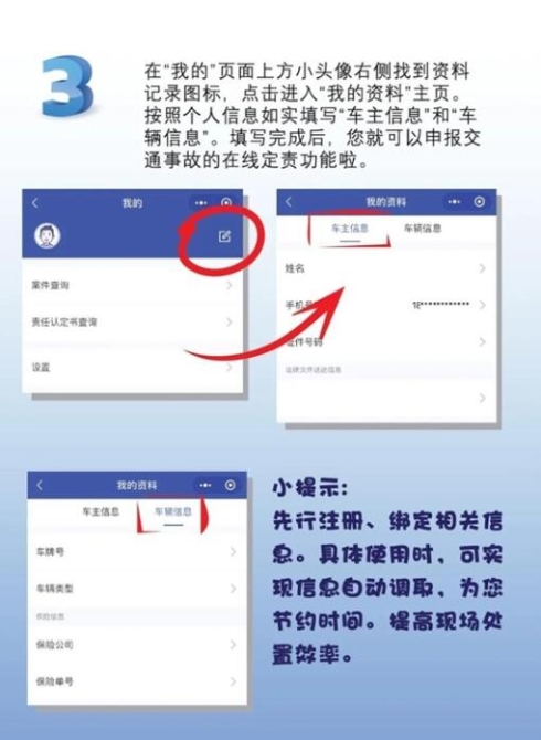 昆明交警提示:市民可以在“事故在线处理”小程序中先行注册、绑定相关信息,具体使用时,即可实现信息自动调取,节约时间,提高现场处置效率。(春城晚报 记者刘嘉)