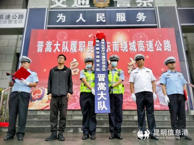 昆明信息港讯 记者合宇聪 日前,云南省公安厅交通警察总队高速公路交巡警支队晋嵩大队挂牌成立,并于8月17日晚6时起正式开始执行勤务,履行昆明东南绕城高速公路的道路交通安全管理职责。记者获悉,晋嵩大队办公地点(临时)目前在:昆明东南绕城高速宜良南收费站内。