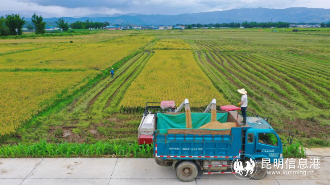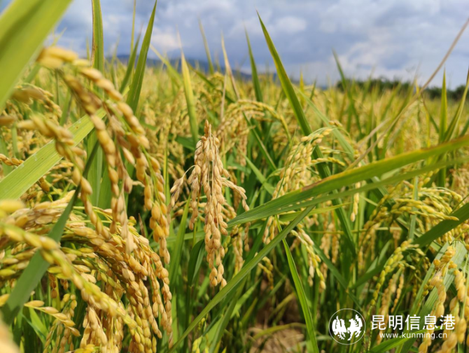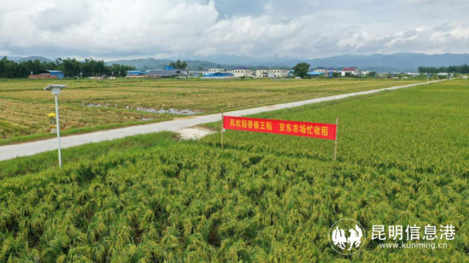 昆明信息港讯 又到了一年一度勐海香米丰收的时节,曼香云天京东农场合作基地1500亩的水稻已经全部成熟。一阵微风,连山成片的稻禾化身金色稻浪,让空气中弥漫着稻谷清香。