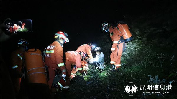 21时32分,待被困男子体力和情绪逐渐稳定后,救援人员迅速护送被困男子向洗马潭终点站转移,由于夜晚山上雾气较大、能见度较低,周围布满荆棘,救援人员在护送过程中一直小心翼翼,最终于22时28分到达索道站。随后,利用索道将被困男子运送下山,并随即交由120医护人员救治,经检测该被困男子体征正常。