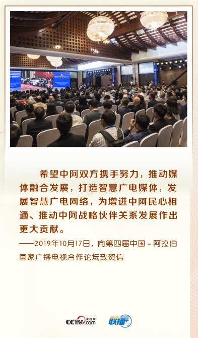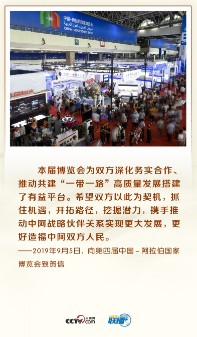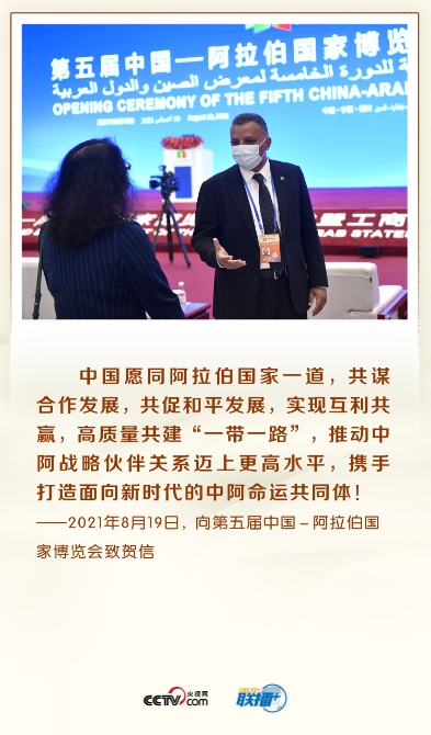 联播+ “中国愿同阿拉伯国家一道,共谋合作发展,共促和平发展,实现互利共赢,高质量共建‘一带一路’,推动中阿战略伙伴关系迈上更高水平,携手打造面向新时代的中阿命运共同体!”8月19日,习近平主席向第五届中国—阿拉伯国家博览会致贺信。