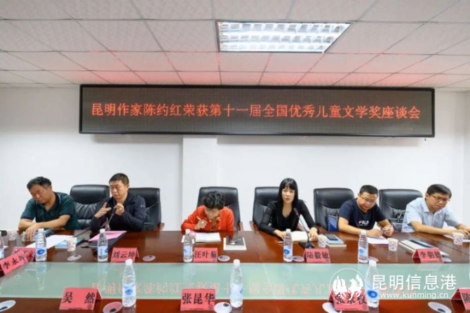 昆明信息港讯 记者甘凌菲 昆明作家陈约红荣获第十一届全国优秀儿童文学奖,为向陈约红获奖表示祝贺,同时为繁荣昆明儿童文学创作,推动本土儿童文学出精品、出人才,8月19日上午,市文联召开“昆明作家陈约红荣获第十一届全国优秀儿童文学奖”座谈会。