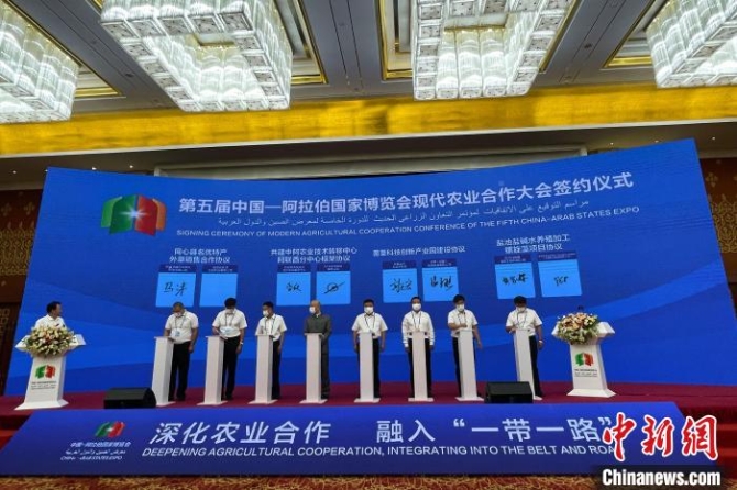 当天,第五届中国—阿拉伯国家博览会现代农业合作大会在宁夏银川市开幕,绿色、品牌、开放引领农业高质量发展对话会同步举行。该会议采取线上线下相结合的方式,围绕现代农业绿色高质量发展、粮食安全和减贫经验、国际贸易和智慧农业等方面进行交流,促进农业科技、投资和贸易高水平合作。