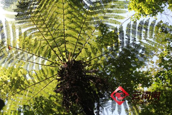 在广南县坝美镇,生长着万亩桫椤林,高大挺拔的桫椤树郁郁葱葱、枝繁叶茂、长势喜人,成为当地一道独特亮丽的风景线。据说,桫椤已有三亿多年的生长历史,繁盛于侏罗纪,曾是远古草食性恐龙的主要食物,被誉为当今的 “活化石”。为保护好辖区内这片“活化石”,坝美镇多举措多方位采取“四强四重”有效措施护佑万亩桫椤。
