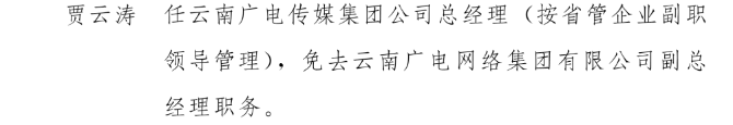 关于贾云涛同志任免职的通知
