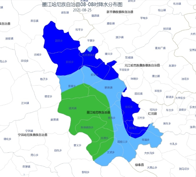 2021年8月25日20:00~8月26日20:00,滇东北昭通市局部发生滑坡泥石流的风险高;滇东北昭通市、曲靖市局部、滇西北怒江州、迪庆州、丽江市局部、滇西德宏州、临沧市局部、滇西南普洱市局部、滇南红河州局部、滇东南文山州局部发生滑坡泥石流的风险较高。