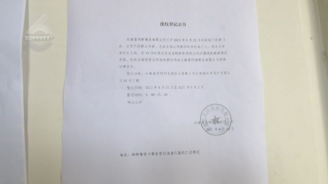 该负责人表示,喜玛特于24日在各门店张贴了债权登记公告,凡涉及该公司债权的单位和个人,在10日内提交相关材料到相关门店办理债权核查登记。
