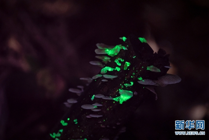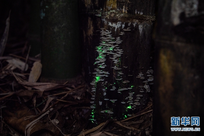 在真菌界,有一些蘑菇会在暗处或夜晚发出淡蓝色、淡绿色、银白色等不同颜色的荧光,它们被称为发光蘑菇。几年前,一位摄影师在中国科学院西双版纳热带植物园拍摄到了发光蘑菇,自此以后,这种罕见的蘑菇每年都会吸引众多游客和摄影爱好者的到来。但并不是每个人都能观赏到理想状态下的发光蘑菇,因为它们的光亮度及持久性受到所处环境的温度、水分的制约,同时也会随着蘑菇本身的营养条件及衰老状况而变化。(新华网 念新洪/文 张娇娇/摄 )