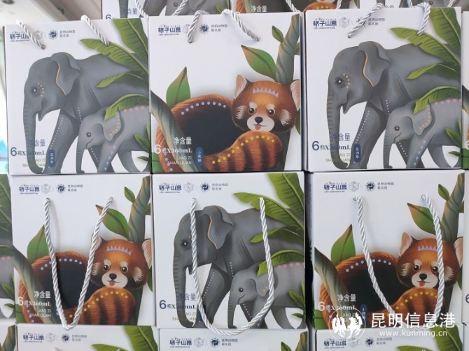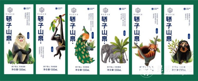 为积极响应习近平总书记“要坚持人与自然和谐共生,让自然生态美景永驻人间”的讲话精神,昆明动物园挑选出最能代表云南和昆明动物园的六种动物形象,与云南轿子雪山水业有限公司共同推出“喝彩云南”联名款系列文创矿泉水。其中包括拥有炫酷“莫西干”发型,滇藏交界高山密林里的雪域精灵滇金丝猴;亚洲现存最大陆生动物,四肢矫健,鼻子灵活的陆上王者亚洲象;热爱在森林中跑酷,两岸猿声啼不住的森林歌唱家长臂猿;颈戴项链,身披西装,性格温和的熊界绅士马来熊;四肢粗短,憨态可掬,爱在树顶晒太阳的顽皮鬼小熊猫;鳞状的羽毛,直直的羽冠,颜值即正义,美丽到不可方物的雨林公主绿孔雀。