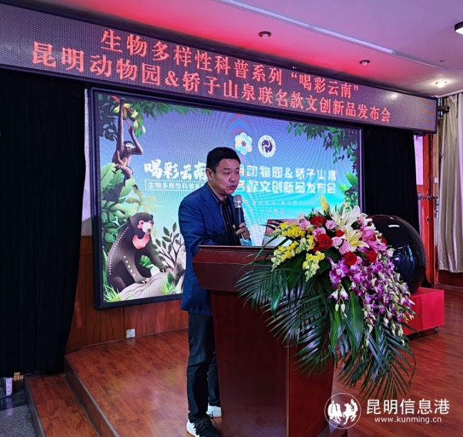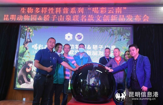 2021年4月,为推动乡村产业振兴、文化振兴、生态振兴,昆明动物园与轿子山泉开展联名定制保护生态、爱护动物系列文创产品工作。经过4个月的努力,云南轿子雪山水业有限公司与昆明动物园共同推出了这一系列的“喝彩云南”联名款文创矿泉水。云南轿子雪山水业有限公司李福彬总经理介绍:“作为一家开发利用自然水资源的企业,更深刻地理解保护自然、爱护野生动物的意义和重要性。今后,公司每售出一件‘喝彩云南’联名款系列文创山泉水,将向昆明动物园捐款一元,用于野生动物的保护工作。”