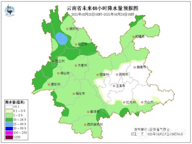 昆明信息港讯 实习记者姚仲恒 记者27日从中国天气网云南站了解到,预计27日滇西、滇西南边缘、滇西北、滇东北有小到中雨局部大雨。28日滇西边缘、滇西北、滇西南边缘有小到中雨局部大雨。